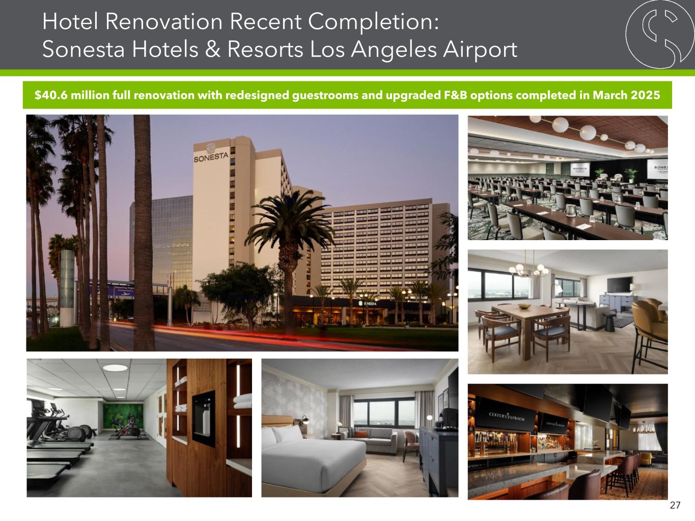Hotel Renovation Recent Completion: Sonesta Hotels & Resorts Los Angeles Airport $40.6 million full renovation with redesigned guestrooms and upgraded F&B options completed in March 2025 27