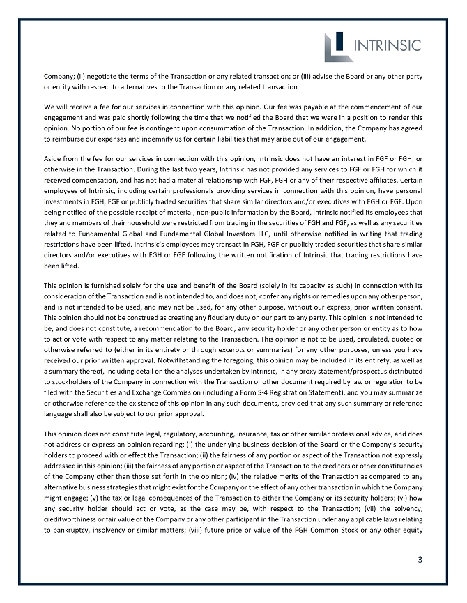 FG Financial Group, Inc. 104 S. Walnut Street, Unit 1A Itasca, IL 60143 (847) 773-1665 Attention: Investor Relations E-mail: ir@fgfinancial.com or investors@fundamentalglobal.com |