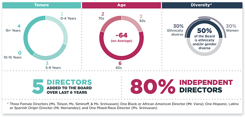 ![]() Deliberate approach to Board refreshment, including the addition of four new independent directors
