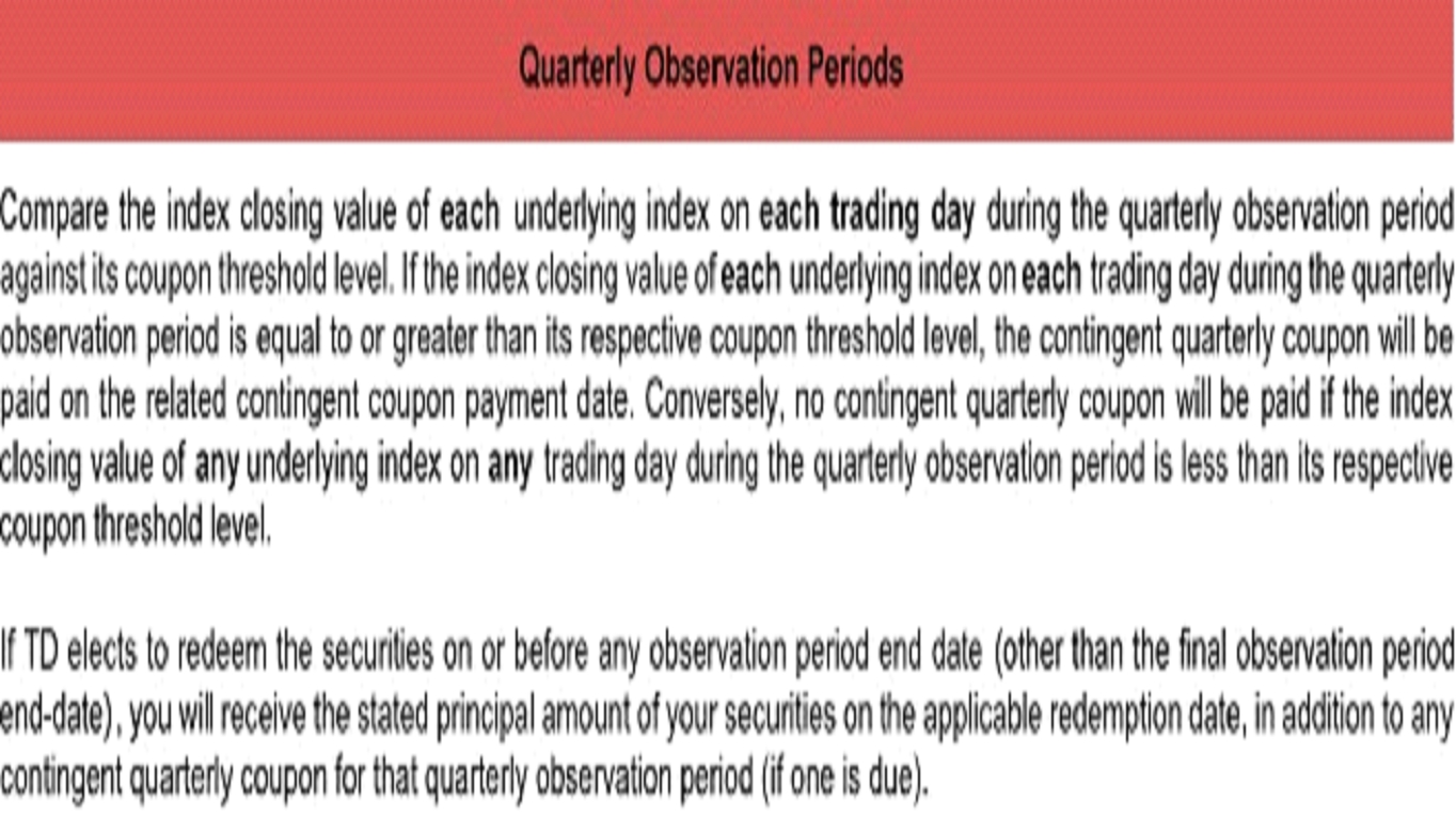 TD may elect to redeem the securities at its sole discretion regardless of the performance of the underlying indices.