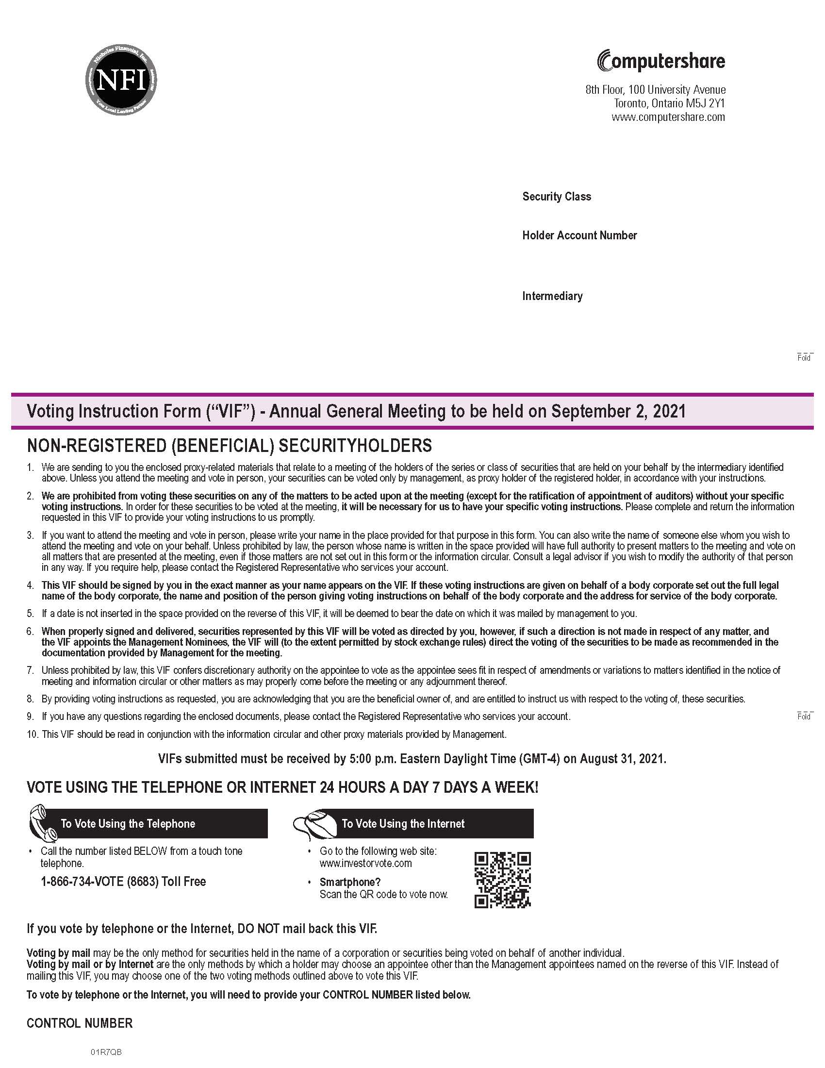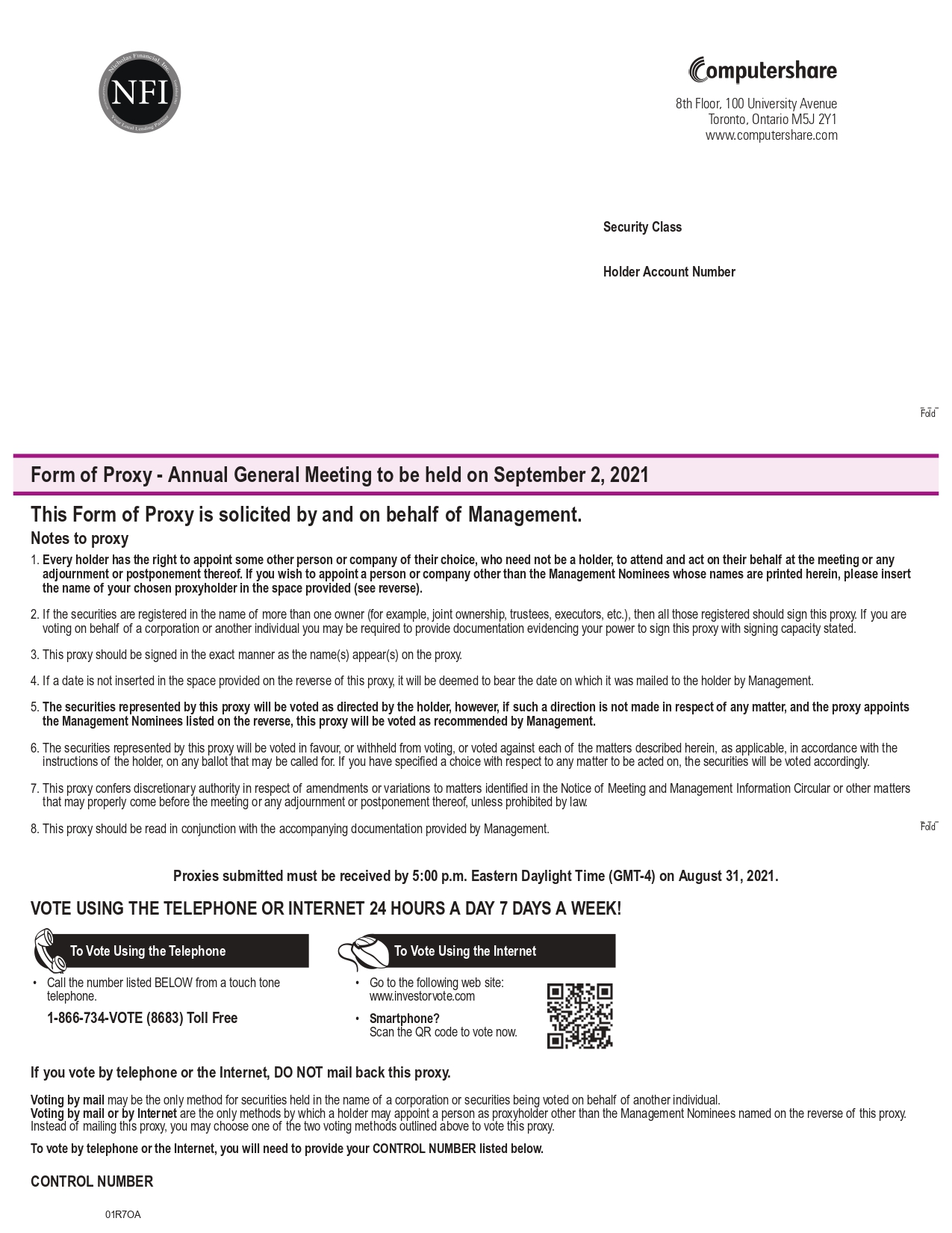 8th Floor, 100 University Avenue Toronto, Ontario M5J 2Y1 www.computershare.com Form of Proxy - Annual General Meeting to be held on Thursday, August 27, 2020 01MXJA This Form of Proxy is solicited by and on behalf of Management. Fold