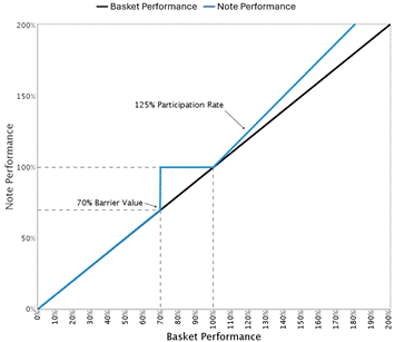 | · | Contingent Return of Principal at Maturity — If the Notes are not automatically called and the Final Basket Value is less than or equal to the Initial Basket Value, but is greater than or equal to the Barrier Value, at maturity, investors will receive the principal amount of their Notes. If the Notes are not automatically called and the Final Basket Value is less than the Barrier Value, at maturity, investors will lose 1% of the principal amount of their Notes for each 1% that the Final Basket Value is less than the Initial Basket Value. |