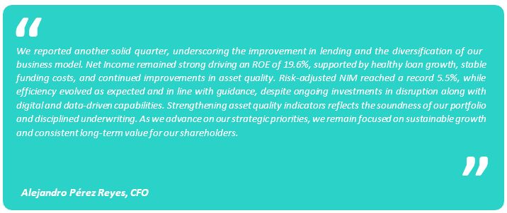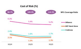 BCP reported solid profitability this quarter, backed by increasing margins; diversified sources of income; and a cost of risk level below that seen in 2024. NIM stood at 6.1%, driven mainly