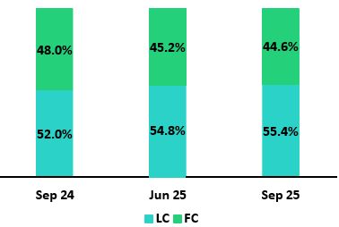 Total Deposits increased 5.9% (+10.8% FX Neutral) YoY and 1.3% (+3.8% FX Neutral) QoQ, mainly driven by growth in both Low-cost deposits and Term deposits. Low-cost