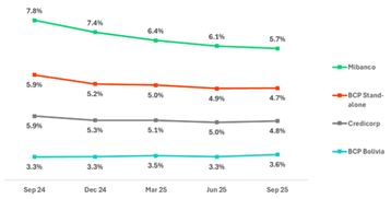 Provisions declined by 30.5% YoY, driven by BCP and Mibanco, which registered improvements in payment performance due to economic recovery and an increase in
