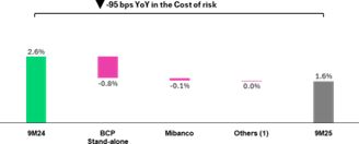 lower-risk vintages’ share of the portfolio mix. QoQ, provisions increased 4.8%. Cost of Risk declined 71 bps YoY to 1.7%, while Risk-Adjusted NIM reached