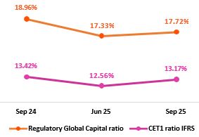 IFRS CET 1 Ratio at 13.17% for BCP and at 17.14% for Mibanco.