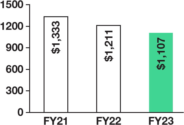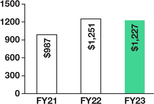 In fiscal 2023, NetApp generated $6.4 billion in net revenues, an increase of 1% from fiscal 2022. GAAP net income for fiscal 2023 was $1.3 billion, or $5.79 per share. Non-GAAP net income in fiscal 2023 was $1.2 billion, or $5.59 per share (a reconciliation of non-GAAP to GAAP results can be found in Annex A). Over the course of the year, we generated $1.1 billion in cash flows from operations and returned approximately $1.3 billion to stockholders.