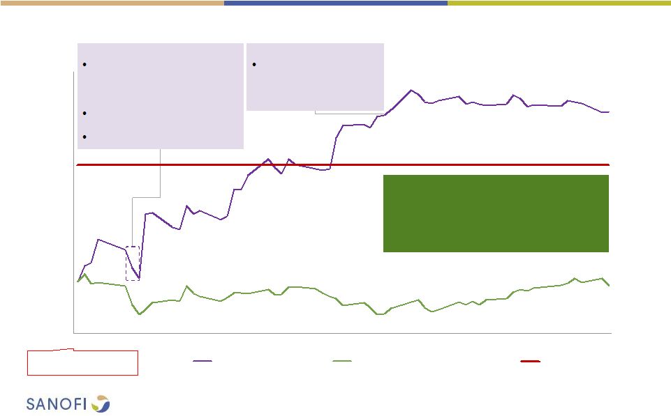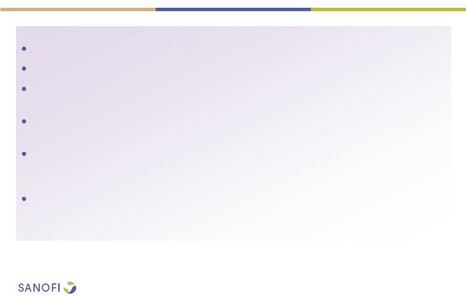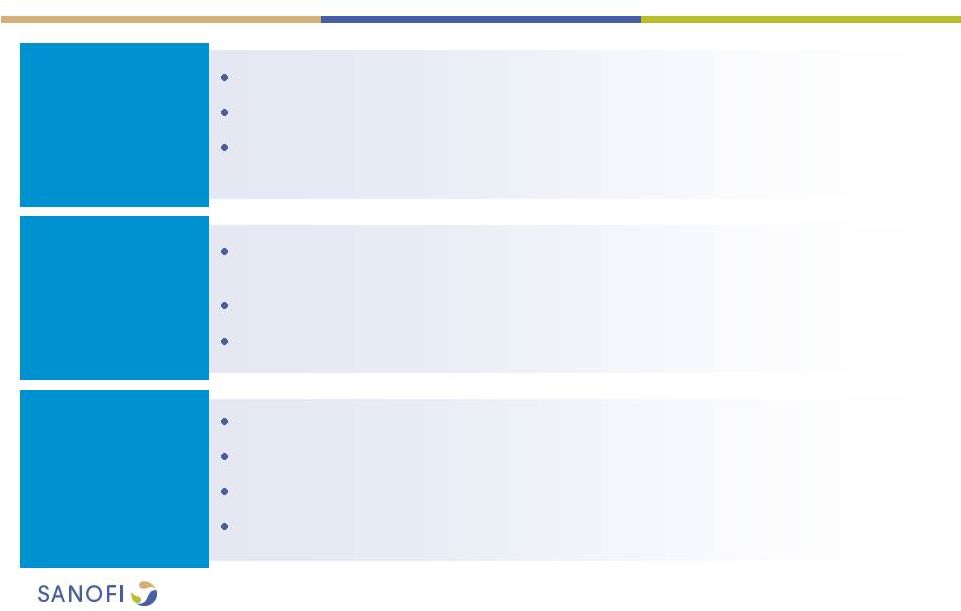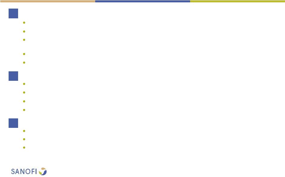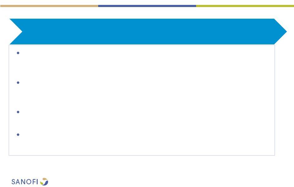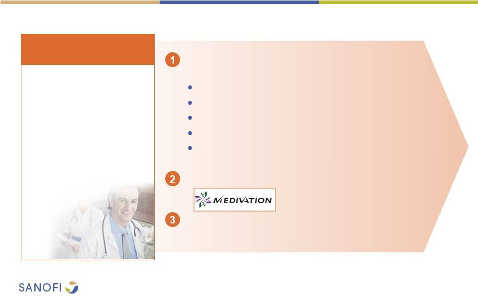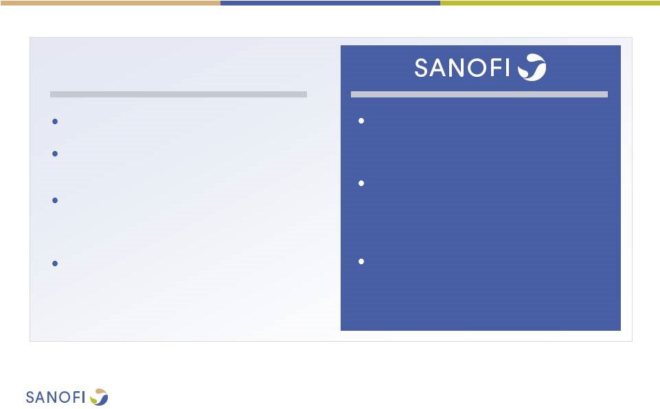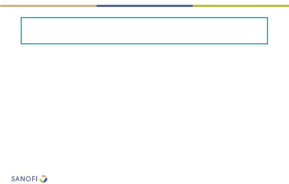 ![]() 2 This presentation contains forward-looking statements as defined in the Private Securities Litigation Reform Act of 1995, as amended. Forward-looking statements are statements that are not historical facts. These statements include projections and estimates and their underlying assumptions, statements regarding plans, objectives, intentions and expectations with respect to future financial results, events, operations, services, product development and potential, and statements regarding future performance. Forward-looking statements are generally identified by the words "expects", "anticipates", "believes", "intends", "estimates", "plans" and variations of these words or comparable words. Although Sanofi's management believes that the expectations reflected in such forward-looking statements are reasonable, investors are cautioned that forward-looking information and statements are subject to various risks and uncertainties, many of which are difficult to predict and generally beyond the control of Sanofi, that could cause actual results and developments to differ materially from those expressed in, or implied or projected by, the forward-looking information and statements. These risks and uncertainties include among other things, risks that Sanofi will ultimately not pursue a transaction with Medivation or Medivation will reject engaging in any transaction with Sanofi, if a transaction is negotiated between Sanofi and Medivation, risks related to Sanofi's ability to complete the acquisition on the proposed terms, the possibility that competing offers will be made, other risks associated with executing business combination transactions, such as the risk that the businesses will not be integrated successfully, that such integration may be more difficult, time- consuming or costly than expected or that the expected benefits of the acquisition will not be realized, risks related to future opportunities and plans for the combined company, including uncertainty of the expected financial performance and results of the combined company following completion of the proposed acquisition, disruption from the proposed acquisition, making it more difficult to conduct business as usual or maintain relationships with customers, employees or suppliers, and the possibility that if the combined company does not achieve the perceived benefits of the proposed acquisition as rapidly or to the extent anticipated by financial analysts or investors, the market price of Sanofi's shares could decline, as well as other risks related Sanofi's and Medivation's respective businesses, including the ability to grow sales and revenues from existing products, competition, including potential generic competition, the ability to protect intellectual property and defend patents, regulatory obligations and oversight, the uncertainties inherent in research and development, future clinical data and analysis, including post marketing, decisions by regulatory authorities, such as the FDA or the EMA, regarding whether and when to approve any drug, device or biological application that may be filed for any such product candidates as well as their decisions regarding labelling and other matters that could affect the availability or commercial potential of such product candidates, the absence of guarantee that the product candidates if approved will be commercially successful, the future approval and commercial success of therapeutic alternatives, the Group's ability to benefit from external growth opportunities, trends in exchange rates and prevailing interest rates, the impact of cost containment initiatives and subsequent changes thereto, the average number of shares outstanding as well as those discussed or identified in the public filings with the SEC and the AMF made by Sanofi, including those listed under "Risk Factors" and "Cautionary Statement Regarding Forward-Looking Statements" in Sanofi's annual report on Form 20-F for the year ended December 31, 2015. Other than as required by applicable law, Sanofi does not undertake any obligation to update or revise any forward-looking information or statements. Forward-looking Statement |