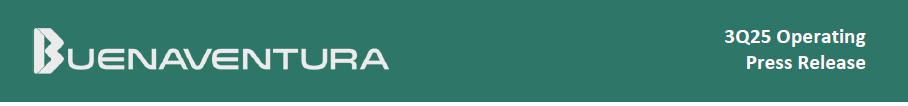 Lima, Peru, October 16, 2025 – Compañía de Minas Buenaventura S.A.A. (“Buenaventura” or “the Company”) (NYSE: BVN; Lima Stock Exchange: BUE.LM), Peru’s largest publicly-traded precious metals mining company, today announced 3Q25 results for production and volume sold.