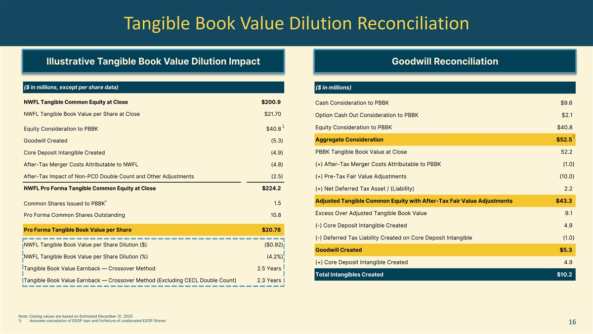 Tangible Book Value Dilution Reconciliation 1 1 16