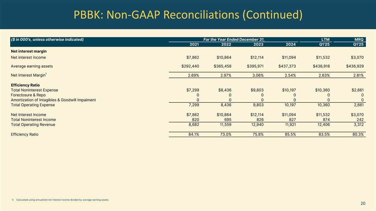 PBBK: Non-GAAP Reconciliations (Continued) 20
