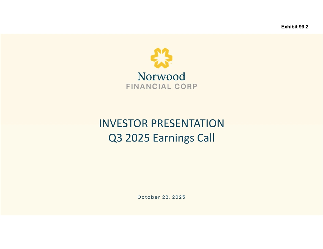 Exhibit 99.2 INVESTOR PRESENTATION Q3 2025 Earnings Call O c t o b e r 2 2 , 2 0 2 5