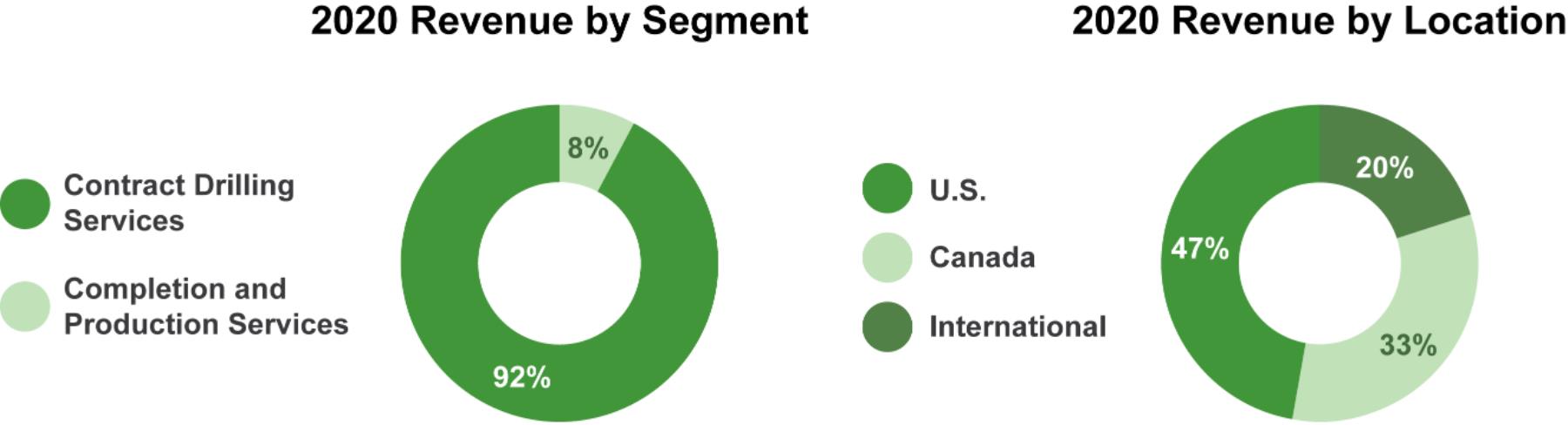 2020 Revenue by Segment Contract Drilling Services Completion and Production Services 8% 92% 2020 Revenue by Location U.S. Canada International 47% 20% 33%