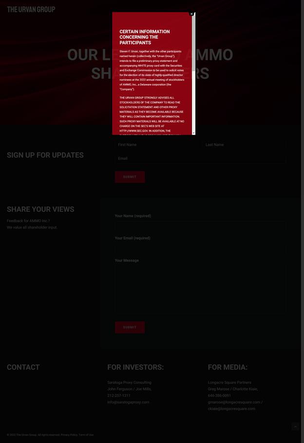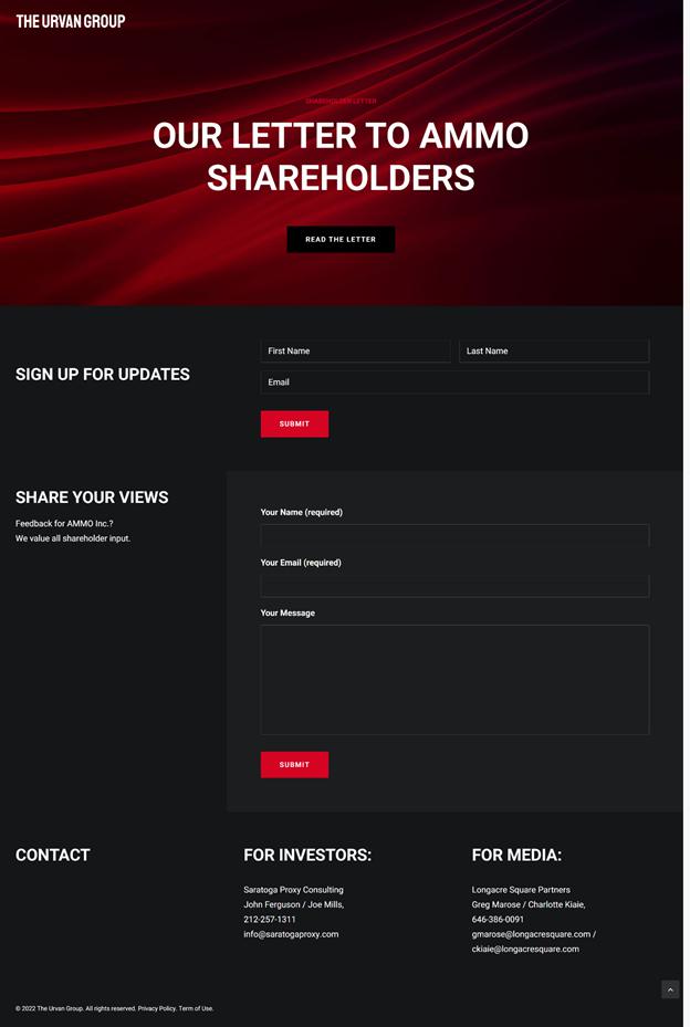 We thank you in advance for your consideration and willingness to evaluate the Urvan Group’s plan and slate. To join our mailing list and share your views on AMMO, we invite you to visit www.TheUrvanGroup.com.