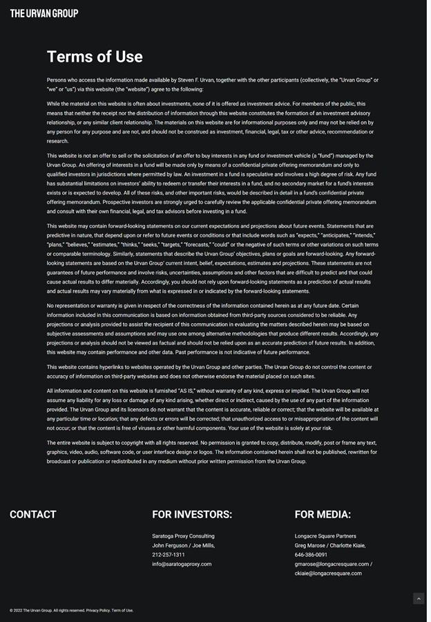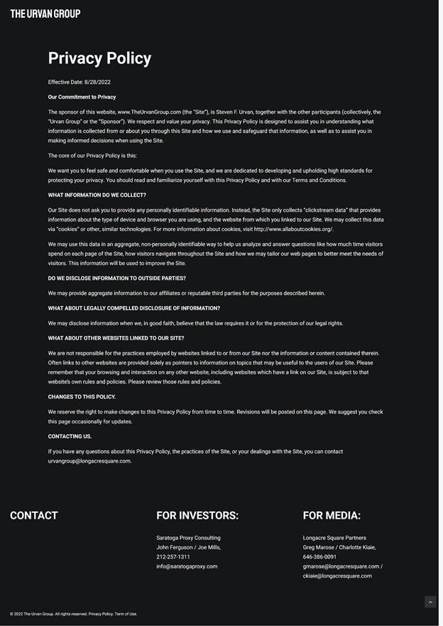 Item 3: Also on August 29, 2022, the Urvan Group launched the website www.TheUrvanGroup.com: