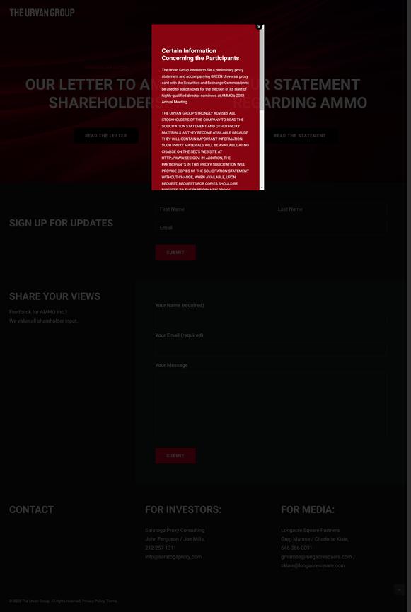 The Urvan Group intends to file a preliminary proxy statement and accompanying GREEN Universal proxy card with the Securities and Exchange Commission to be used to solicit votes for the election of its slate of highly-qualified director nominees at AMMO’s 2022 Annual Meeting.