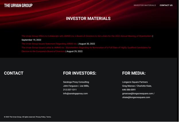 The Urvan Group intends to file a preliminary proxy statement and accompanying GREEN Universal Proxy Card with the Securities and Exchange Commission (“SEC”) to be used to solicit votes for the election of its slate of highly-qualified director nominees at AMMO’s 2022 Annual Meeting.