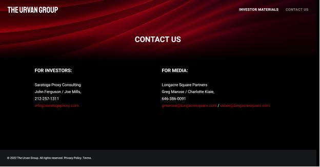 Item 2: Also on September 19, 2022, the Urvan Group uploaded the following materials to www.TheUrvanGroup.com: