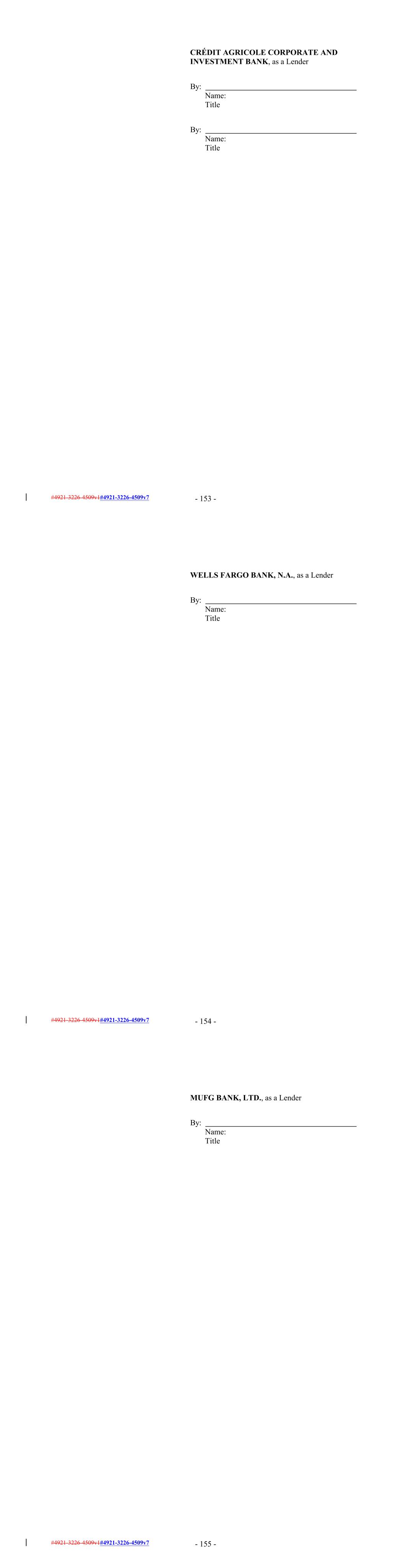- 153 -#4921-3226-4509v1#4921-3226-4509v7 CRÉDIT AGRICOLE CORPORATE AND INVESTMENT BANK, as a Lender By: Name: Title By: Name: Title - 154 -#4921-3226-4509v1#4921-3226-4509v7 WELLS FARGO BANK, N.A., as a Lender By: Name: Title - 155 -#4921-3226-4509v1#4921-3226-4509v7 MUFG BANK, LTD., as a Lender By: Name: Title