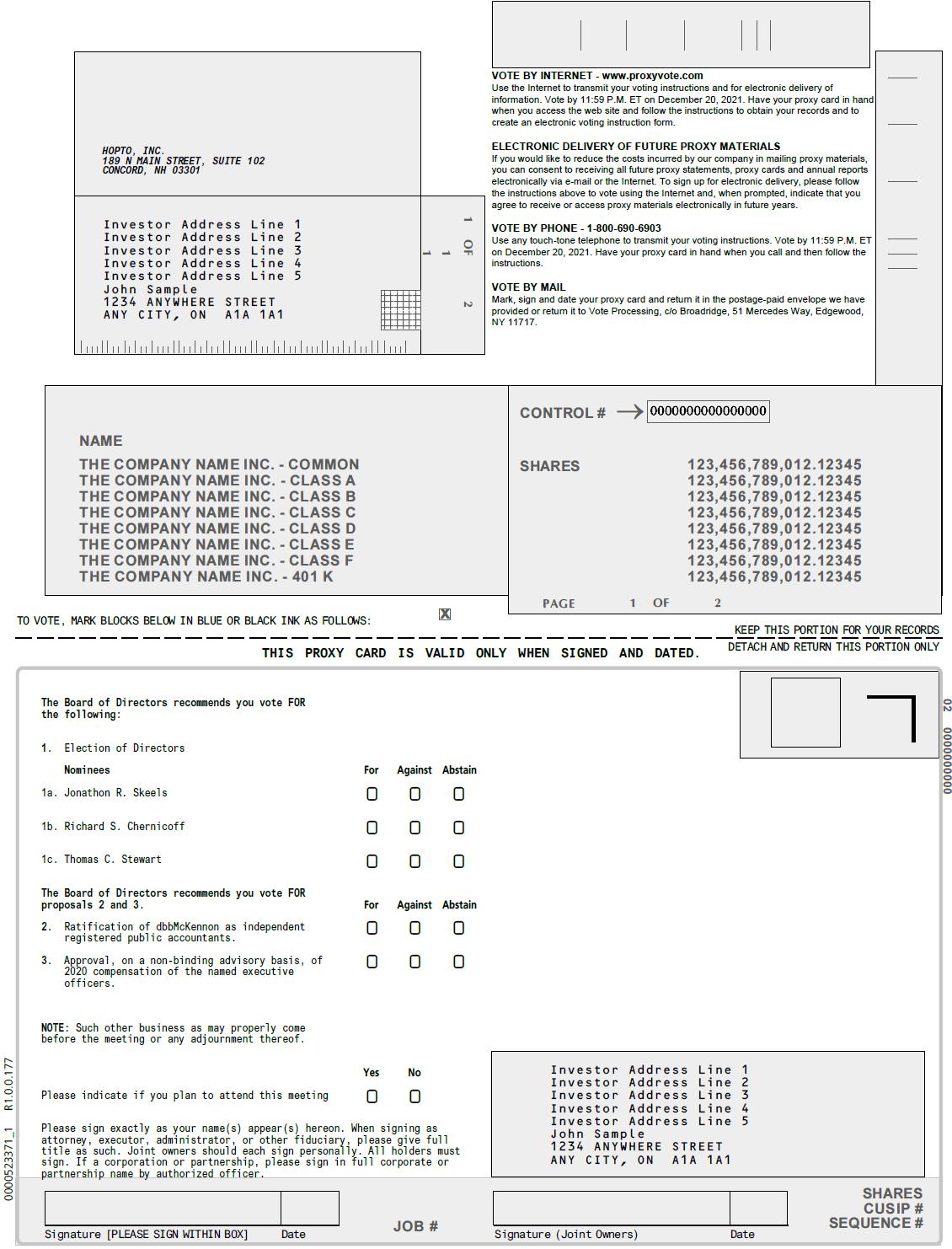 We are furnishing you this proxy statement in connection with the solicitation of proxies by the Board of Directors (the “Board”) of HopTo, Inc., a Delaware corporation (the “Corporation”, “Company”, “we”, “us”, or “our”). This proxy statement addresses the items of business for the 2021 Annual Stockholders’ Meeting of the Corporation (the “Annual Meeting”) to be held on December 21, 2021 or any postponement or adjournment thereof. We will hold the Annual Meeting at 9:00 a.m., at 620 Newport Center Drive, 11th Floor, Newport Beach, CA 92660. The Notice of Annual Stockholders’ Meeting, this proxy statement, our Annual Report on Form 10-K for the fiscal year ended December 31, 2020, a proxy card and any other accompanying proxy materials are being made available to our stockholders on or about November 29, 2021.