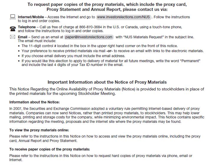 NOT A FORM FOR VOTING You may immediately vote your proxy on the Internet at: www.proxypush.com/NUS • Use the Internet to vote your proxy 24 hours a day, 7 days a week, until