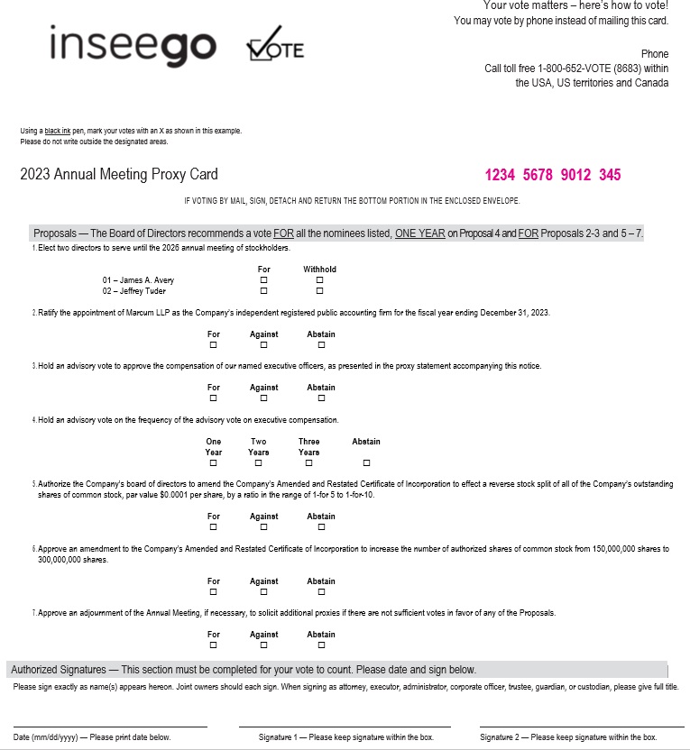 IMPORTANT NOTICE REGARDING INTERNET AVAILABILITY OF PROXY MATERIALS FOR THE STOCKHOLDER MEETING TO BE HELD ON SEPTEMBER 5, 2023: The Notice of Annual Meeting of Stockholders, Proxy Statement and the Company’s 2022 Annual Report are available at www.inseego.com/proxymaterials.