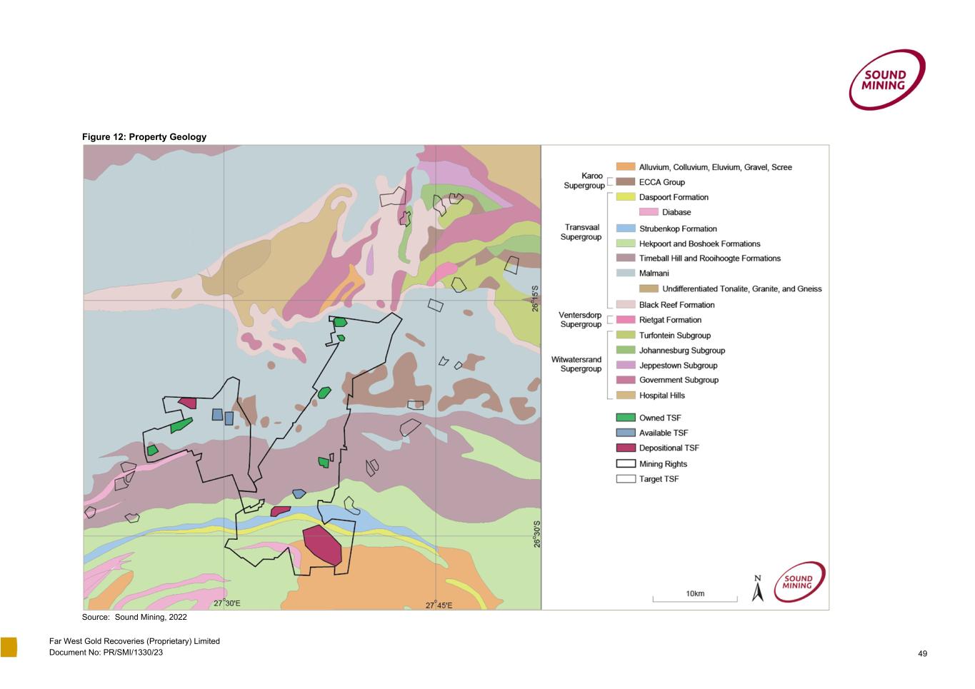 Far West Gold Recoveries (Proprietary) Limited Document No: PR/SMI/1330/23 49 Figure 12: Property Geology Source: Sound Mining, 2022