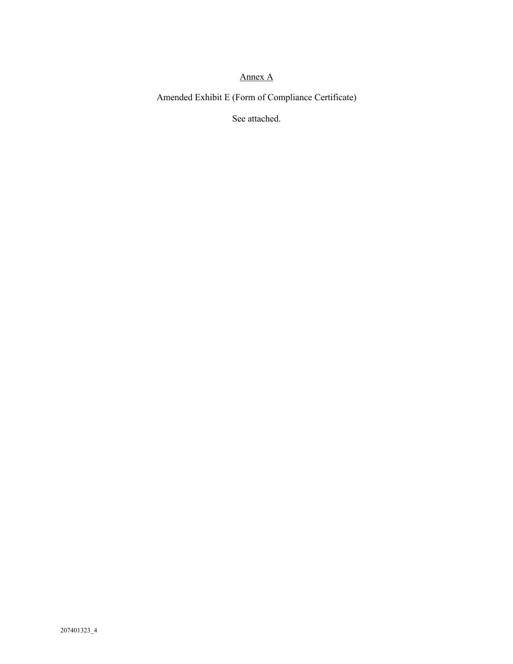207401323_4 Annex A Amended Exhibit E (Form of Compliance Certificate) See attached.