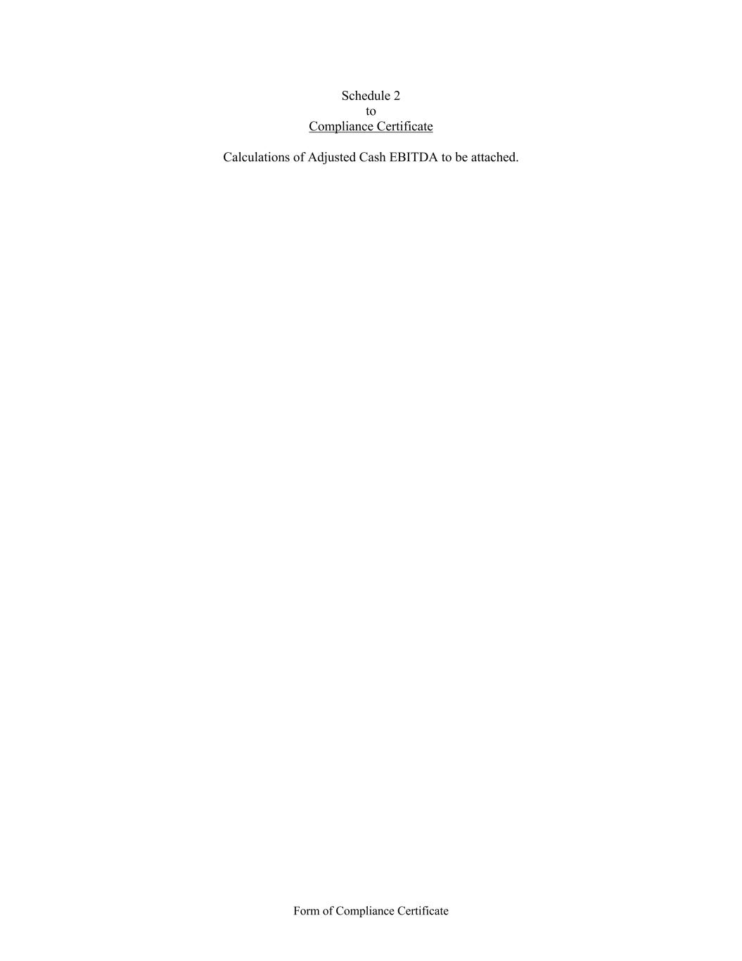 Form of Compliance Certificate Schedule 2 to Compliance Certificate Calculations of Adjusted Cash EBITDA to be attached.