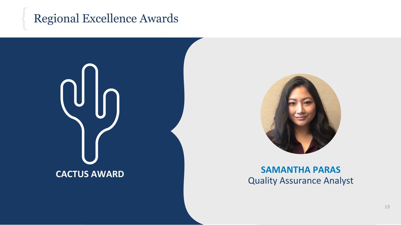 SAMANTHA PARAS Quality Assurance Analyst 13 CACTUS AWARD Regional Excellence Awards
