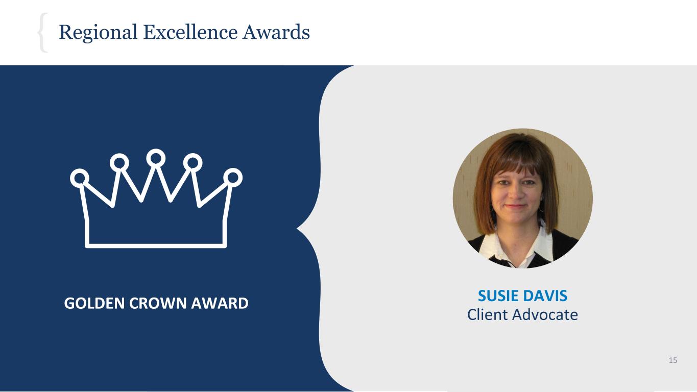 15 GOLDEN CROWN AWARD Regional Excellence Awards SUSIE DAVIS Client Advocate