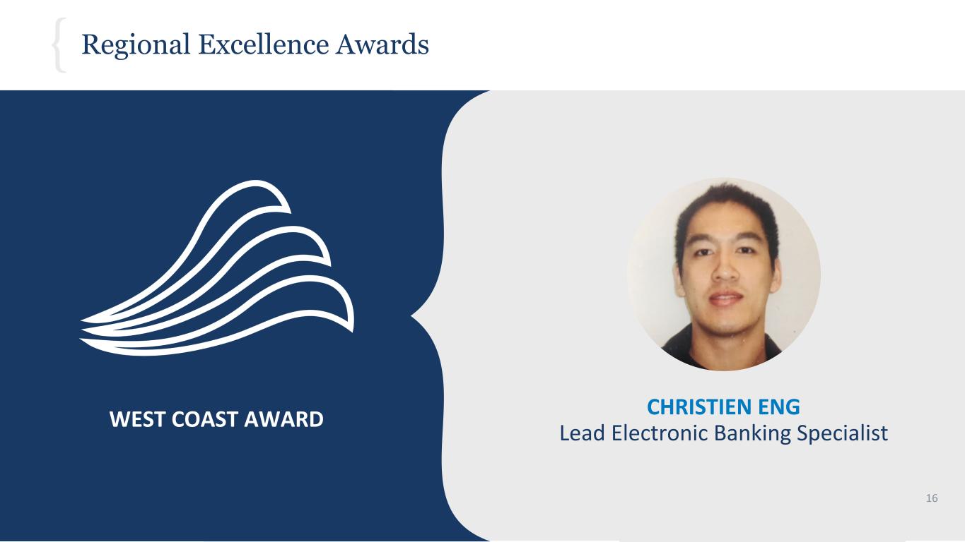 16 WEST COAST AWARD Regional Excellence Awards CHRISTIEN ENG Lead Electronic Banking Specialist