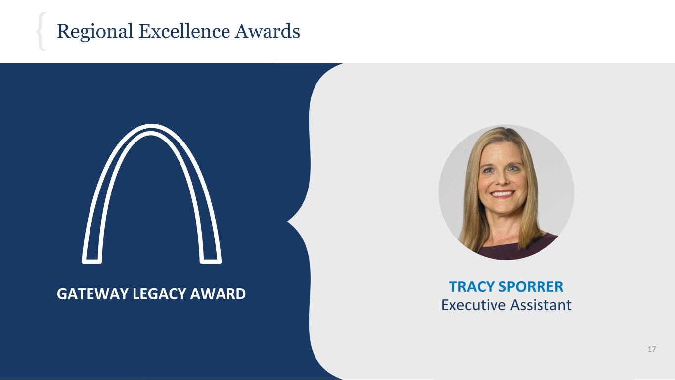 17 GATEWAY LEGACY AWARD Regional Excellence Awards TRACY SPORRER Executive Assistant