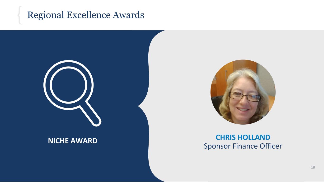 18 NICHE AWARD Regional Excellence Awards CHRIS HOLLAND Sponsor Finance Officer