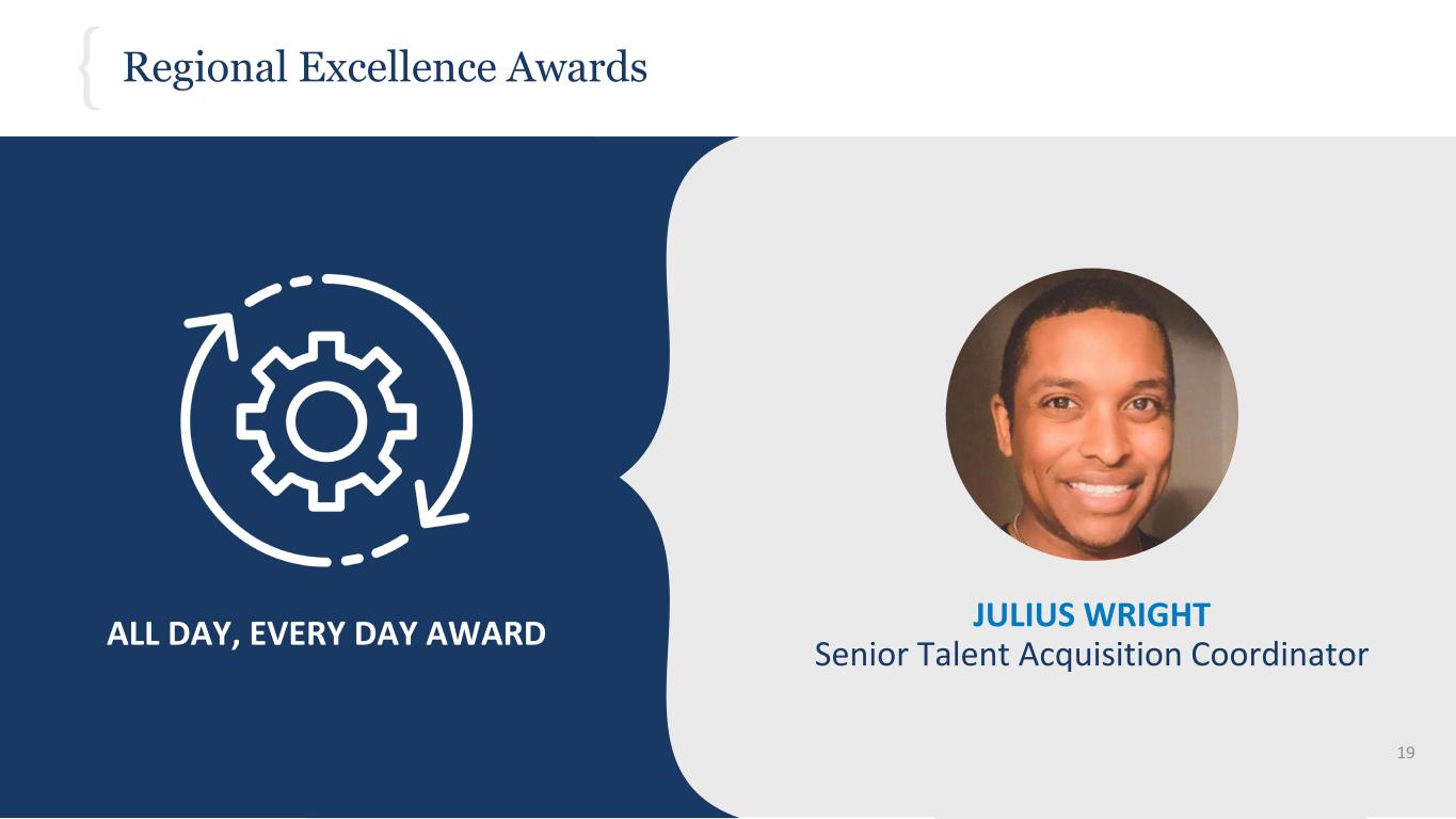 19 ALL DAY, EVERY DAY AWARD Regional Excellence Awards JULIUS WRIGHT Senior Talent Acquisition Coordinator