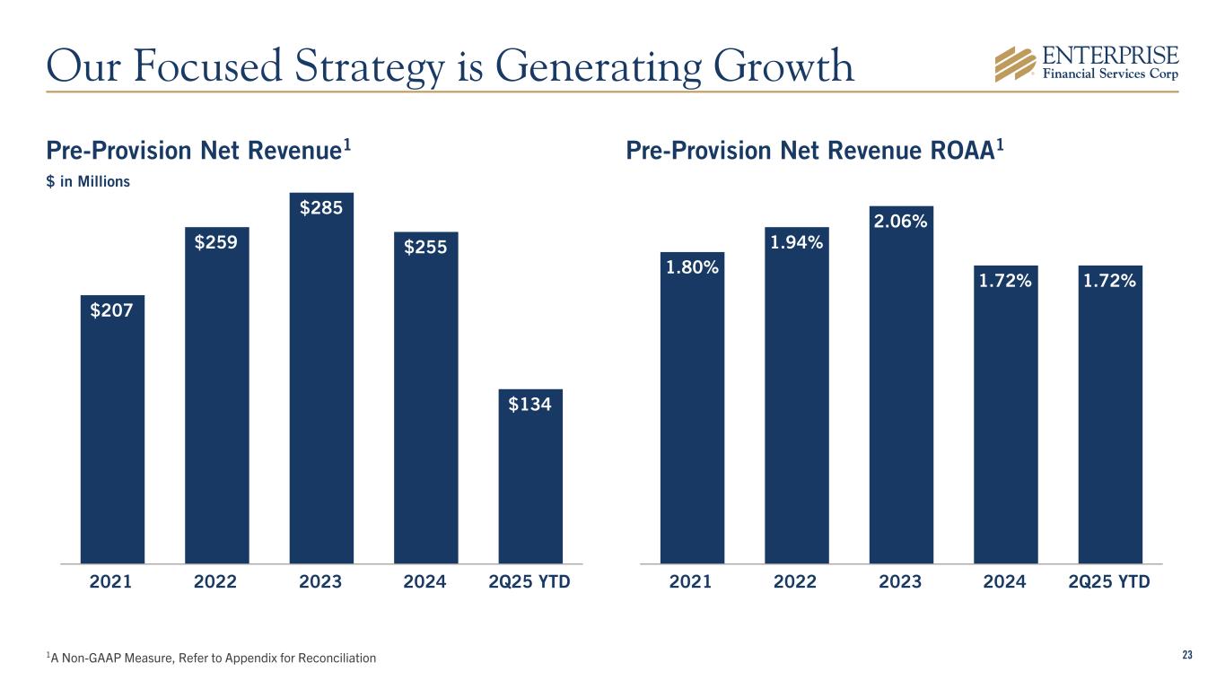 231A Non-GAAP Measure, Refer to Appendix for Reconciliation Pre-Provision Net Revenue1 $ in Millions Pre-Provision Net Revenue ROAA1 $207 $259 $285 $255 $134 2021 2022 2023 2024 2Q25 YTD 1.80% 1.94% 2.06% 1.72% 1.72% 2021 2022 2023 2024 2Q25 YTD Our Focused Strategy is Generating Growth
