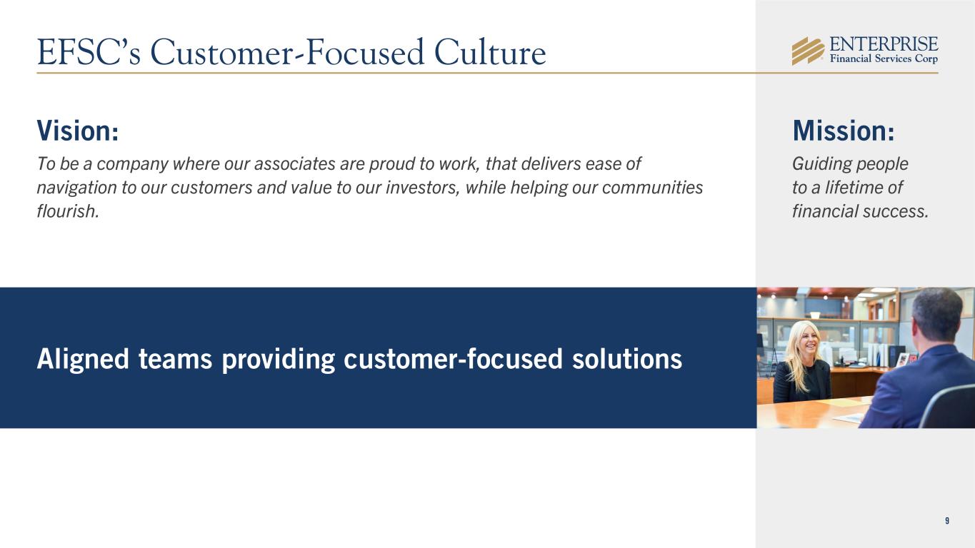 9 Aligned teams providing customer-focused solutions Vision: To be a company where our associates are proud to work, that delivers ease of navigation to our customers and value to our investors, while helping our communities flourish. Mission: Guiding people to a lifetime of financial success. EFSC’s Customer-Focused Culture