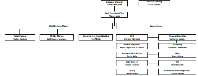 Chilean banks are required by the General Banking Law to maintain regulatory capital of at least 8% of risk-weighted assets, net of required loan loss allowance and deductions, and paid-in capital and reserves (“basic capital”) of at least 3% of total assets, net of required loan loss allowances. Regulatory capital and basic capital are calculated based on the consolidated financial statements prepared in accordance with the Compendium of Accounting Standards issued by the FMC (formerly the SBIF) the Chilean regulatory agency. As we are the result of the merger between two predecessors with a relevant market share in the Chilean market, we are currently required to maintain a minimum regulatory capital to risk-weighted assets ratio of 11%. As of December 31, 2020, the ratio of our regulatory capital to risk-weighted assets, net of loan loss allowance and deductions, was 15.37% and our core capital ratio was 6.69%.