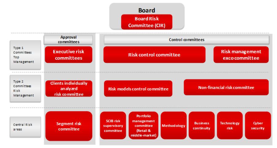 The risk management program contemplates that all relevant risk issues must be reported to the Board of Directors, the Integral Risk