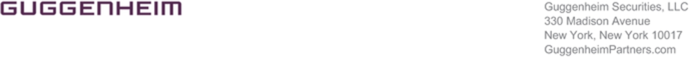 Guggenheim Securities. Our opinion is subject to the assumptions, limitations, qualifications and other conditions contained herein and is necessarily based on economic, capital markets and other conditions, and the information made available to us, as of the date hereof. We assume no responsibility for updating or revising our opinion based on facts, circumstances or events occurring after the date hereof.