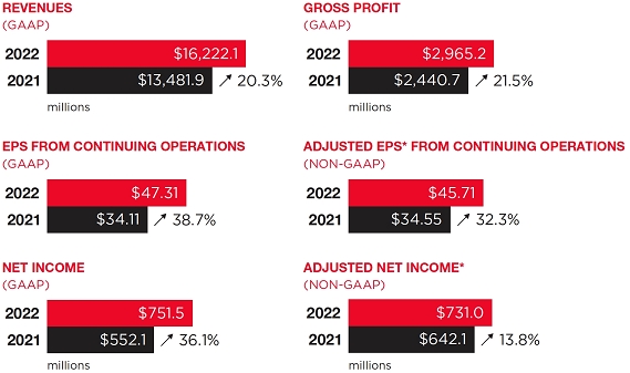 |  | Acquired $940 million in annualized revenues in 2022; $2.5 billion in annualized revenues in 2021 |  | Continued to maintain lower cost structure compared to pre-pandemic levels | |