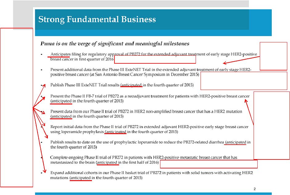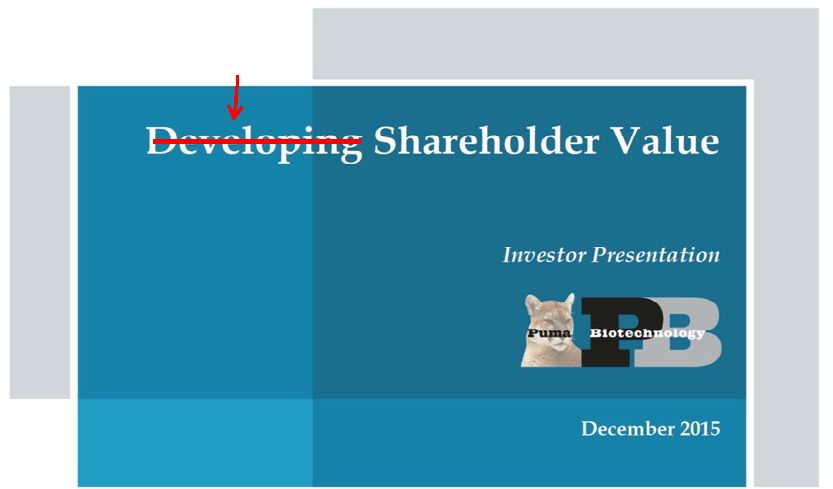 ![]() Destroying Selected slides from Puma Biotechnology Inc.’s presentation, dated December 4, 2015.