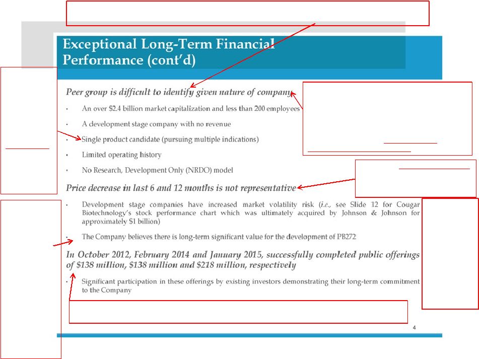 development stage and market cap. The Company has consistently claimed that it is developing three drug candidates in numerous SEC filings, including its most recent 10-K. Puma has never explained what happened to the development of these candidates. However, on slide 11 the Company manages to identify 10 peers in order to show that 2 other life sciences