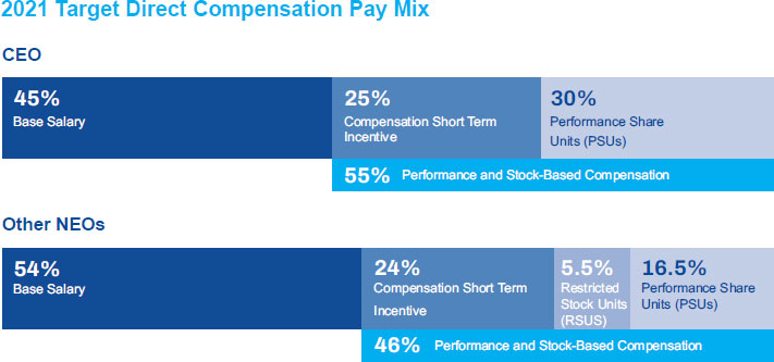 Supplemental CEO Pay Ratio. If accounting rules did not provide that one-third of the PSU grant should be disclosed in each of the three performance years, Mr. Bratt’s annual total compensation as reported in the Summary Compensation table would have been $3,798,957. We are providing a supplemental ratio that compares the CEO’s regular annual pay, including the full grant value of his 2021 PSUs, to the pay of the median- paid employee as we believe that this supplemental ratio reflects a more representative comparison. The resulting supplemental CEO pay ratio is 155 to 1.