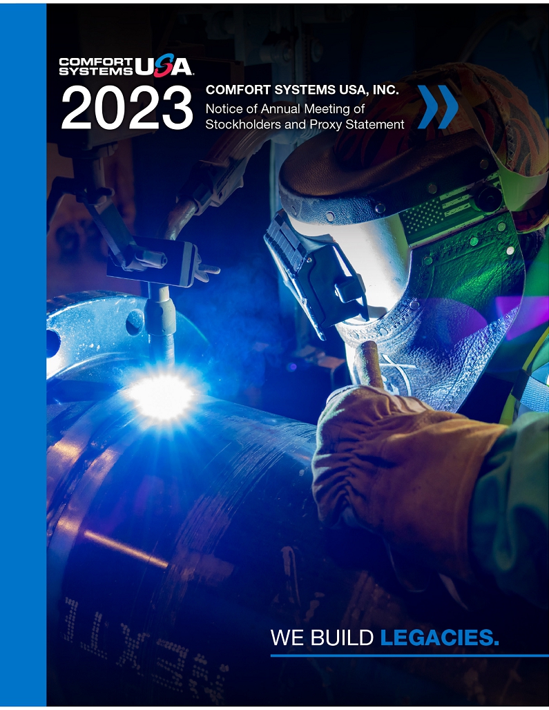 You are cordially invited to attend the Annual Meeting of the Stockholders of Comfort Systems USA, Inc., which will be held on Tuesday, May 16, 2023 at 11:00 a.m. Central Time.