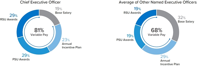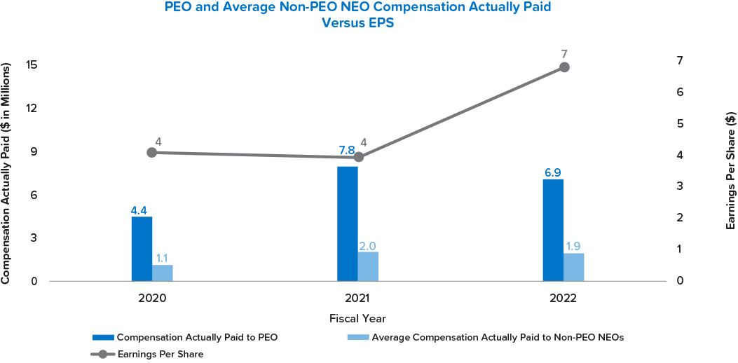As required by Item 402(v) of Regulation S-K, we are providing the following information about the relationship between executive compensation actually paid, as computed under SEC rules, and certain financial performance of the Company. For more information about the Company’s executive compensation program, refer to the CD&A starting on p. 36 and the compensation tables starting on p. 52. Note that for our Named Executive Officers (“NEOs”) other than Mr. Lane, our principal executive officer (“PEO”), compensation is reported as an average.