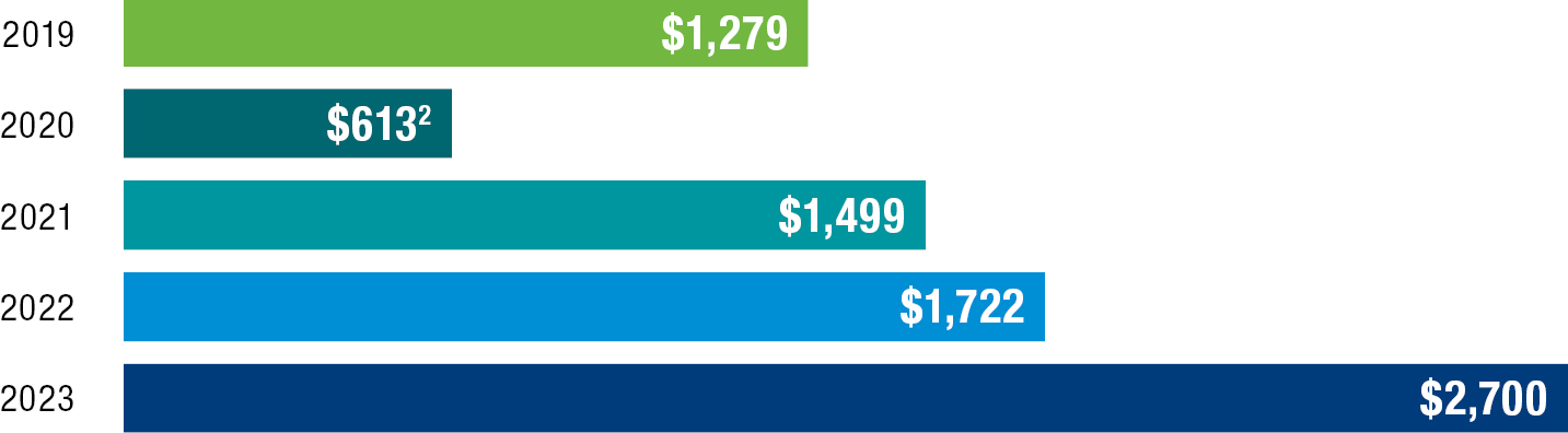 Though 2022 is not a covered year in the pay versus performance adjustments, year-end Monte Carlo valuations were used for the outstanding 2021, 2022 and 2023 PSU awards to calculate their change in fair value during 2023.