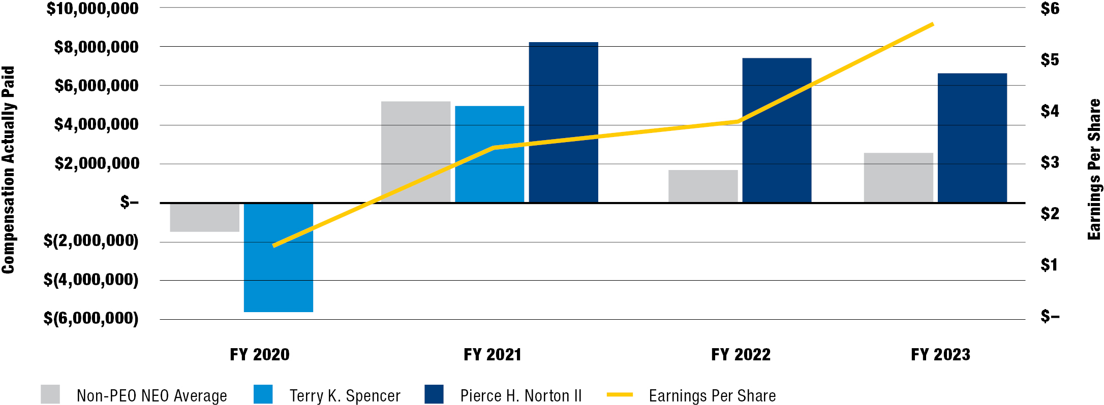 The following graph reflects the relationship between compensation actually paid and Earnings per Share.
