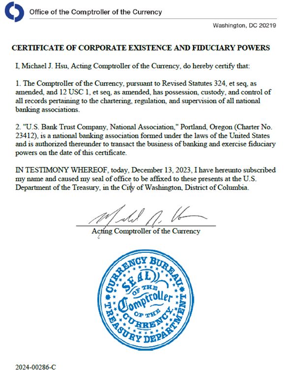 U.S. BANK TRUST COMPANY, NATIONAL ASSOCIATION